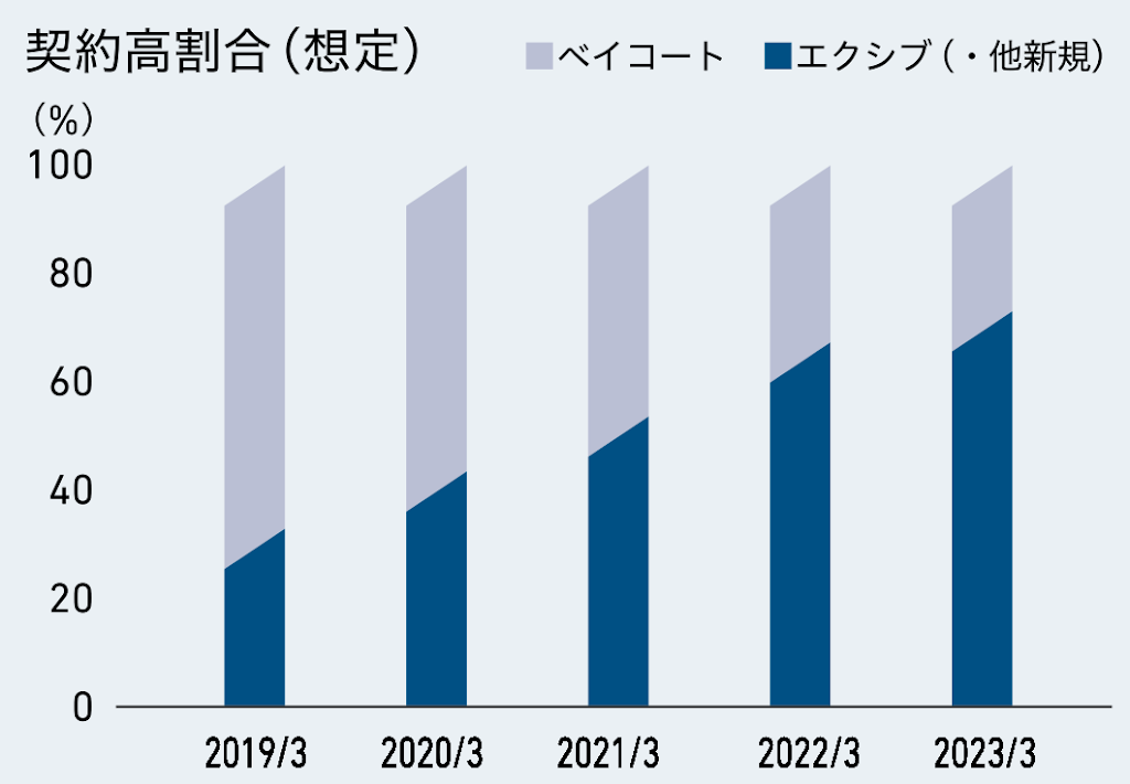 このように、現在は新規販売というよりは、在庫販売に力を入れている時期ですので、こちらのグラフにあるように、ベイコート倶楽部ではなく、エクシブの割合が今後増えていくとされています。このことから、新規のベイコート倶楽部の開発は、横浜以降は当面ないのではないかと予測されます。