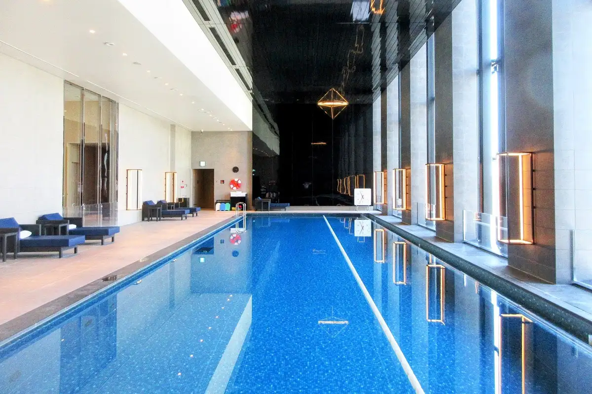ヒルトンのダイヤモンド会員として、39階にあるエグゼクティブラウンジで午後1時にチェックイン。アップグレードされた部屋は、コーナースイートでした。午後3時からはラウンジでアフタヌーンティーを楽しみ、その後、38階にあるフィットネスジム・室内温水プール・サウナ&大浴場をしっかり利用しました。
