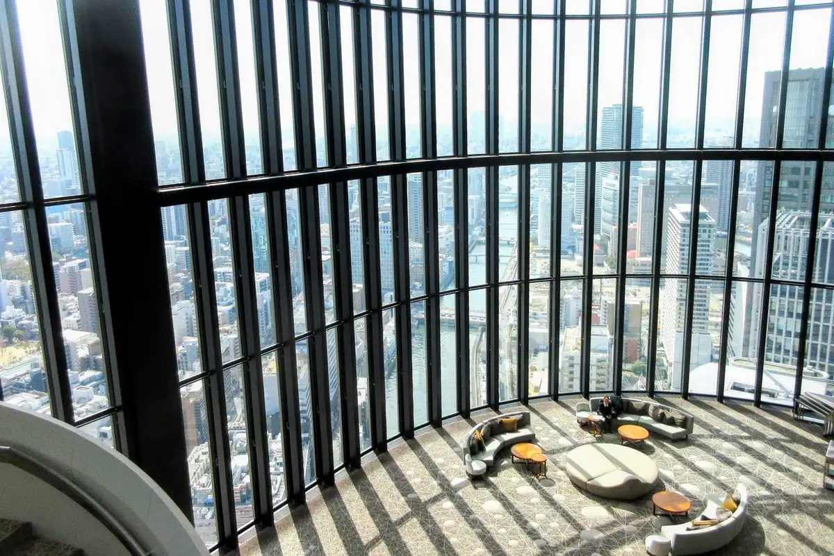 3月中旬の金曜日、コンラッド大阪に妻と1泊してきました。まずは、地上40階のロビーに圧倒されました。ここは「天空の非日常空間」で、眼下に大阪の街並みが広がります。