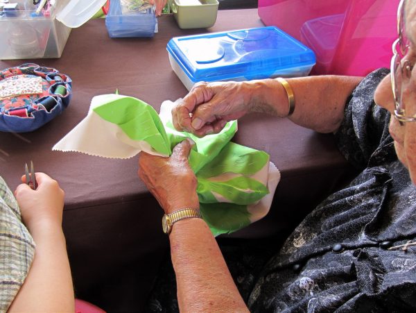 2日目の午前中は、コンドミニアムでの朝食会の後、ロイヤル・ハワイアン・センターで毎週火曜日に行われているハワイアン・キルトのレッスン会に参加しました。といっても僕は付き添いで、参加したのは小学生の自宅ちゃんです。