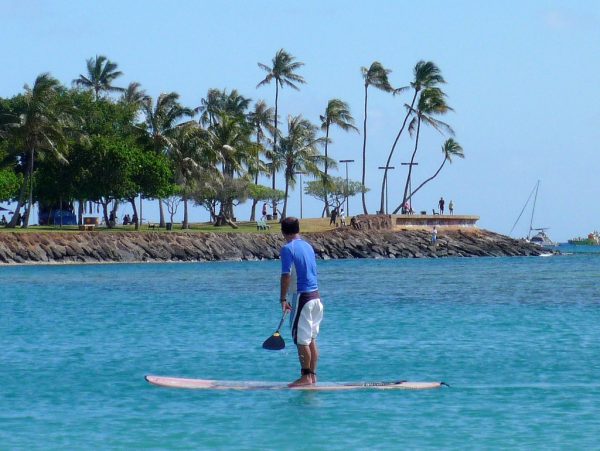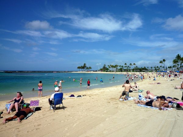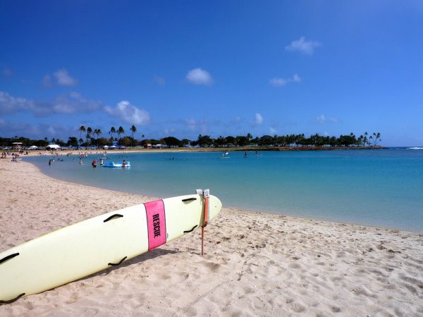 ワイキキからトロリーに乗ってアラモアナ・センターで下車し、向かうはアラモアナ・ビーチパーク(Ala Moana Beach Park)です。あらゆる意味で、ここはファミリーにとってパーフェクトなビーチだと思います。