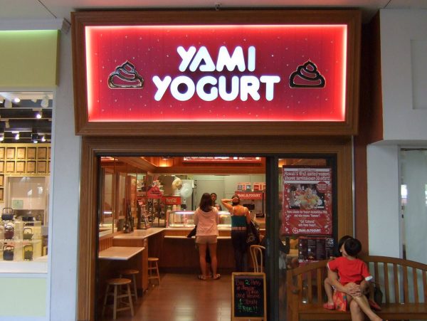 ひとしきりビーチで遊んだらおやつタイムです。アラモアナ・センターの中にフローズンヨーグルトのお店「ヤミ・ヨーグルト(Yami Yogurt)」があったのでこちらに行くことに。