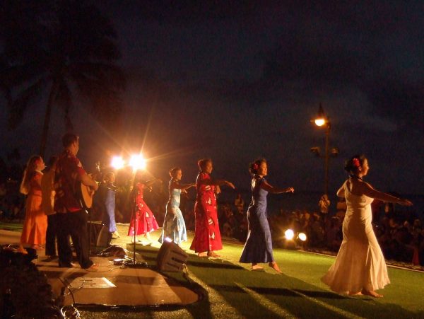 サンセットの後はフラ・ショーを見に行きましょう。ワイキキ・ビーチの東側、クヒオ・ビーチ・パークでは、無料のフラ・ショーがほぼ1日おきに行われています。場所はデューク・カハナモク像からビーチに入っていくと、左側に芝生ステー…