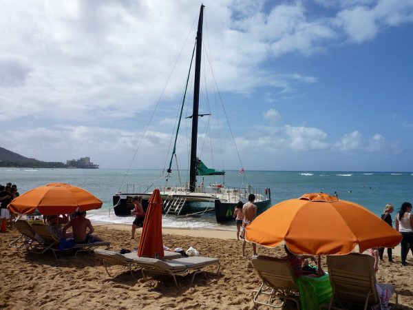 4日目です。今日もいいお天気。飽きずに午前中はビーチで過ごしましょう。ホテルから歩いてワイキキビーチに向かいます。ところで、ワイキキビーチってどこからどこまでか、ご存知でしたか?
