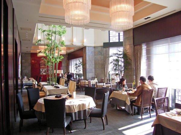 冬、エクシブ軽井沢の中庭の夜の風景だ。ライトに照らされた凍った水面を見て、軽井沢の冬の寒さを思い知る。今話題の「星のや軽井沢」にも負けないくらい、なかなかいい雰囲気である。