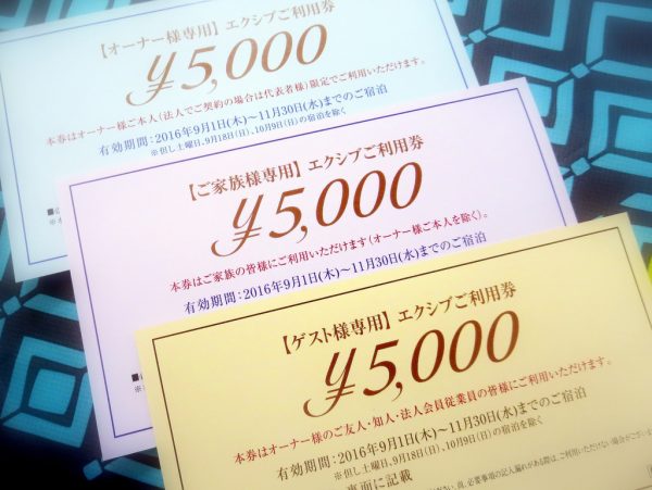 オーナー本人も使えるようになったことで、ひそかな人気アイテムとなった「エクシブご利用券」。2016年7月に発行された最新バージョンは再度リニューアルされ、3種の券面が用意されるようになった。今日はそれらについて見てみよう…