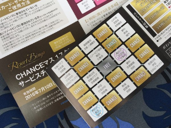 リゾートトラストでは例年「リゾートビンゴ」というキャンペーンを催している。エクシブやリゾーピアを1泊2食で利用するとスタンプがもらえ、ビンゴの要領で達成した列数に応じて商品がもらえるというものである。