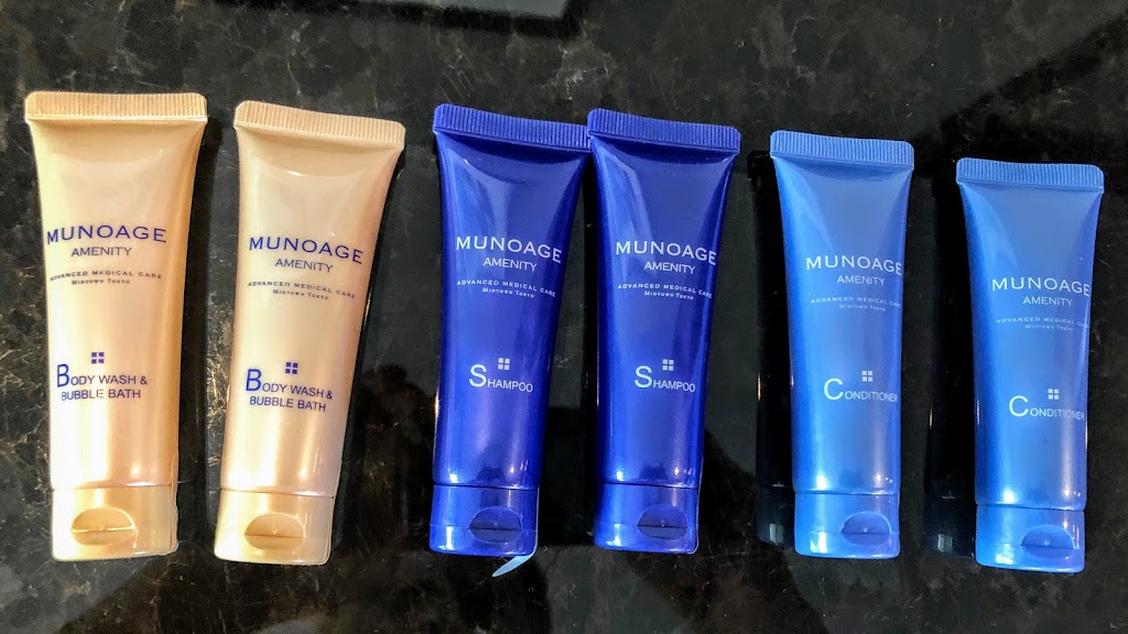 10/1から徐々に切り替えているとのことで新しいアメニティはリゾートトラストグループのアドバンスト・メディカル・ケア製MUNOAGE(ミューノアージュと読むようです)ブランドのチューブで従来のものと比べお洒落な感じを受けました。