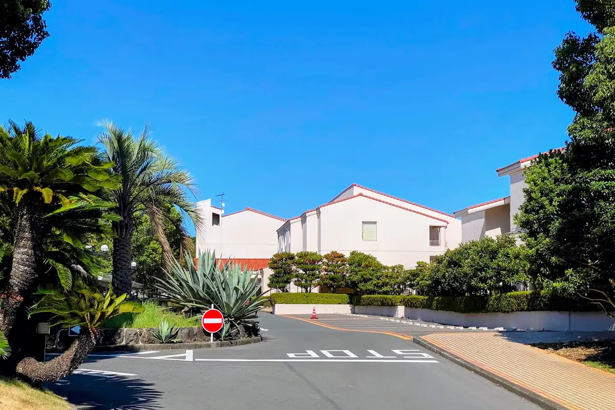 ではケーススタディとして、エクシブ伊豆からハーヴェスト伊東まで、路線バスで移動してみたいと思います。まずはエクシブからバス停まで。