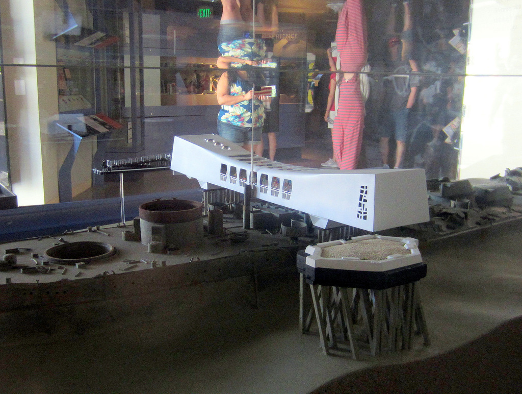 お隣のAttackの方は、真珠湾攻撃の日に起きたことを時系列に沿って細かく学べる施設です。この館の真ん中にはシアターがあり、攻撃の詳細を映像で紹介しています(ブックストアでDVDが買えます)。この館にはこれから行くアリゾナ記念館の模型がありますから、海中に沈む戦艦がどうなっているのかを先に見ておくと、イメージが膨らんでよいと思います。