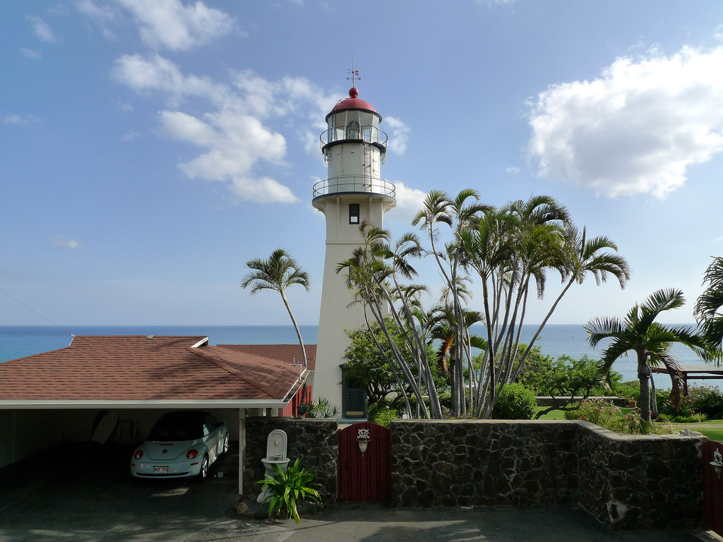 ダイヤモンドヘッド灯台から崖を下ると、そこはダイヤモンドヘッド・ビーチパーク。車上からはたくさんのサーファーを見ることができます。