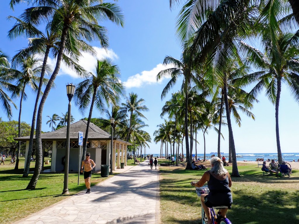 ここから南に向かっては、気持ちのよい舗装された遊歩道が伸びていて、カピオラニ公園と併せて最高のジョギングコースとなっています。