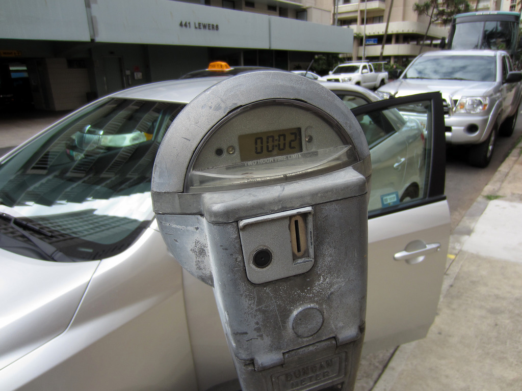 コンドミニアムの前のコインパーキングに駐車して、荷物を積み込みます。これは比較的新しいデジタル式。