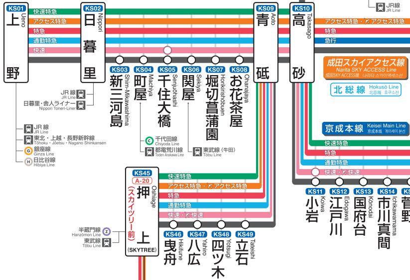 もう1つは品川からの京急・都営浅草線との相互乗り入れルートです。こちらは押上で京成に接続します。押上からの第2ビルまでは最短46分ですから、大手町あたりからだとスカイアクセスが一番早そうです。