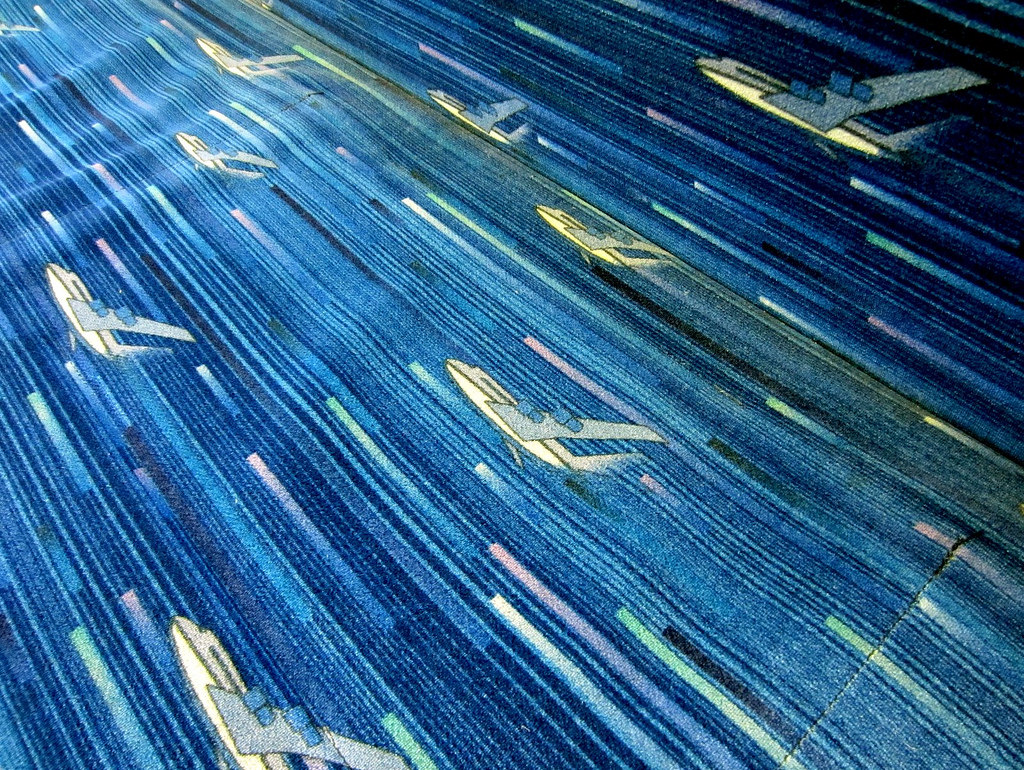 僕の場合は、行きは半蔵門線で押上まで行ってスカイアクセスに乗り換え、帰りは早く来た方が上野行きだったので日暮里で乗り換えて山手線に接続しました。京成本線でアクセスしていた昔のことを思うと、たった1回の乗り換えで空港の下まで行けてしまう便利さにはちょっと感動してしまいます。車両は普通の通勤電車そのものですが、ファブリックには飛行機柄が採用されており、地味~に旅への期待を高めてくれます(笑)。