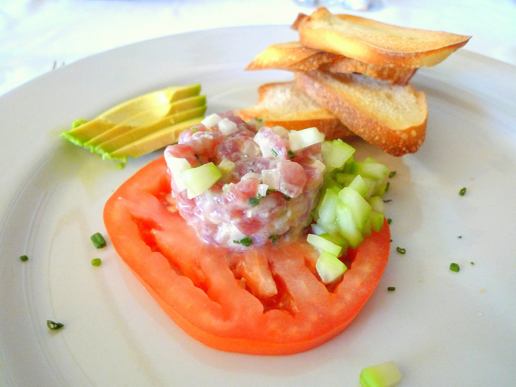 長い長い旅の初日で疲れていますし、バレ(BALE)のなますサンドなんかがちょうどいい感じだと思いましたので、僕はアヒ・タルタル(Ahi Tartar)を頼みました。ステーキハウスですが、シーフードもあるのです。