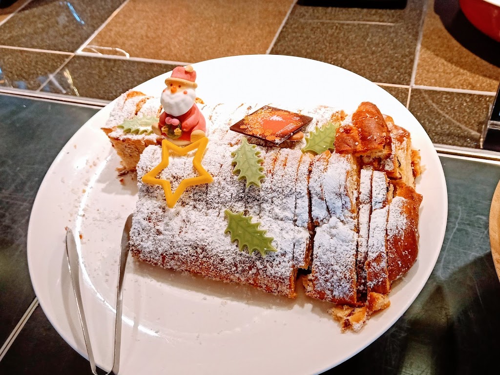 例えば、こちらはドイツの定番クリスマス菓子のシュトレンですが、アフタヌーンティーの時間にこんな風に提供されていました。
