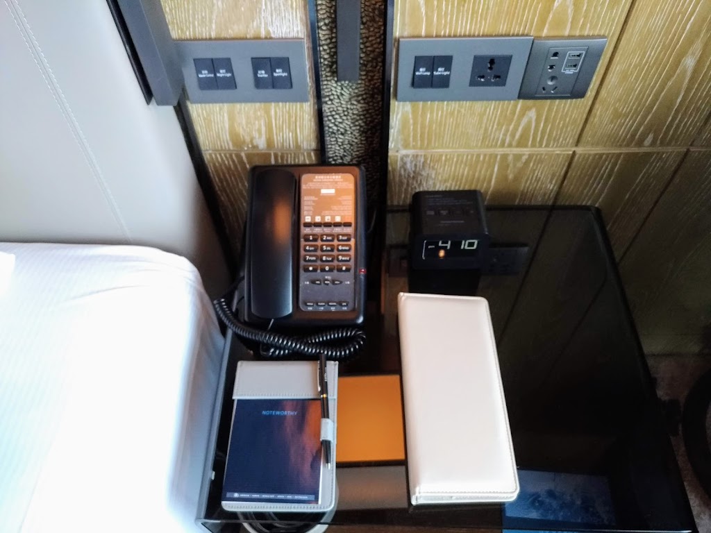 新しいホテルだけあって、ベッドサイドには使いやすい場所に電源アウトレット(USB含む)が用意されていて助かります。