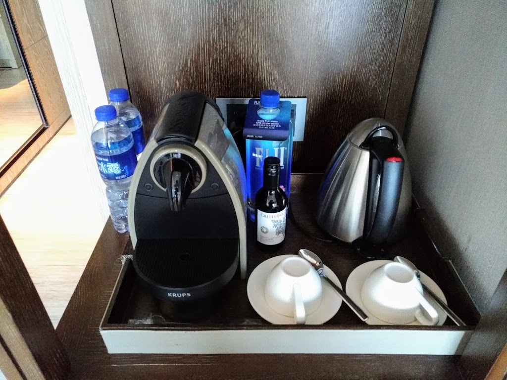 ミニバー関係は特筆すべきものはありませんが、エグゼクティブルームだったせいか、コーヒーマシンが装備されていました。