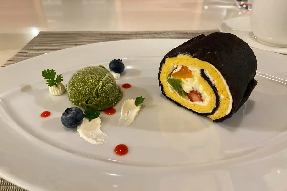 冒頭の写真はラ・ペールで出してくれた恵方巻ロールです。カット面がよくわかるように手前から広角で取りましたので、奥行きがよくわかりませんが、ロールケーキの2つ分くらいあるボリューム感。