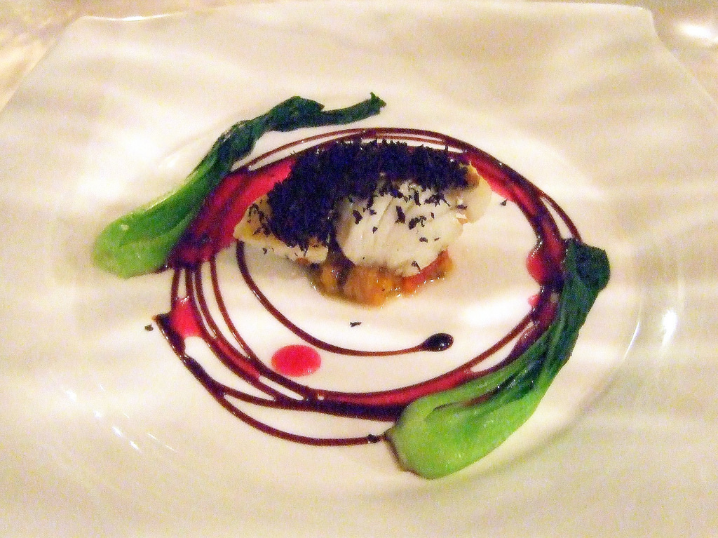 お魚料理は「鱸のポアレに爽やかな赤紫蘇の香りをつけて」であった。これはお魚自体はおいしかったが、ソースがイマイチな印象。