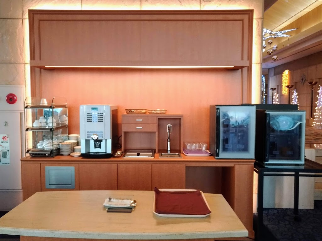 セルフサービスの内容ですが、コーヒーベンダーが1台に、小型冷蔵庫が2つ。冷蔵庫には各種のソフトドリンクが入っています。
