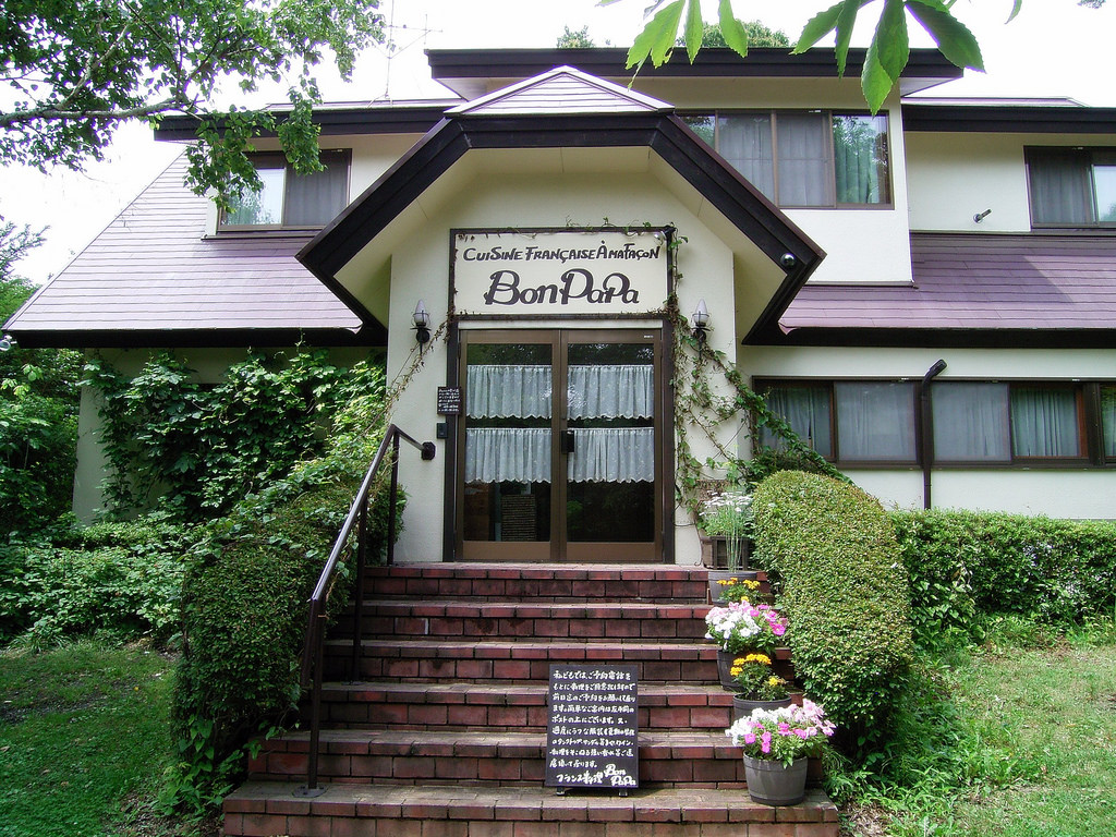 エクシブ軽井沢の裏手、追分の別荘地にあるフランス料理店である。しかし飛び込みで行っても食事はできない。メニューはなく、客の好みに応じたコースのみを出す、完全予約制の店なのだ。