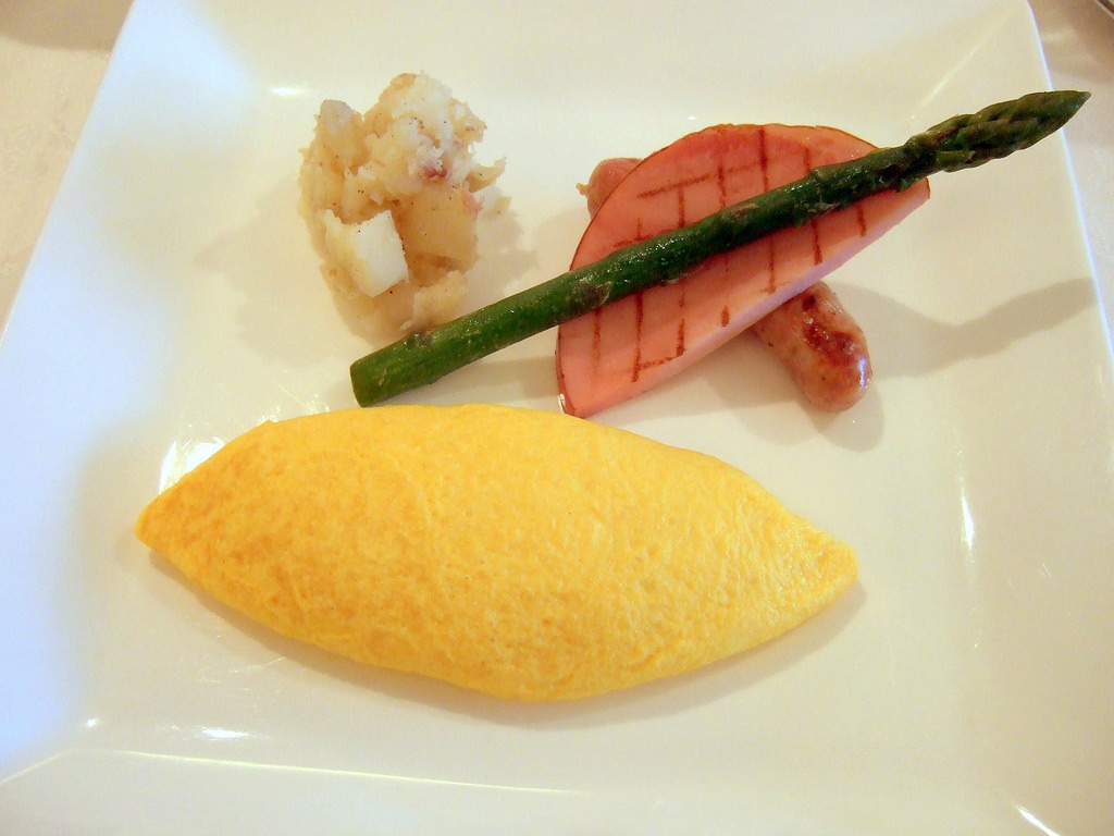 エクシブ軽井沢のレストランリニューアルに伴って大きく変わったのが朝食事情である。かつては、花木鳥での和食膳、ボナキューでのアメリカンブレックファスト(写真。2011年に撮影)、ラウンジでのコンチネンタルブレックファスト、さらに繁忙日には翆陽での中華風朝食にコンベンションホールでのバイキングと、5種類ものバリエーションから選択することができた。
