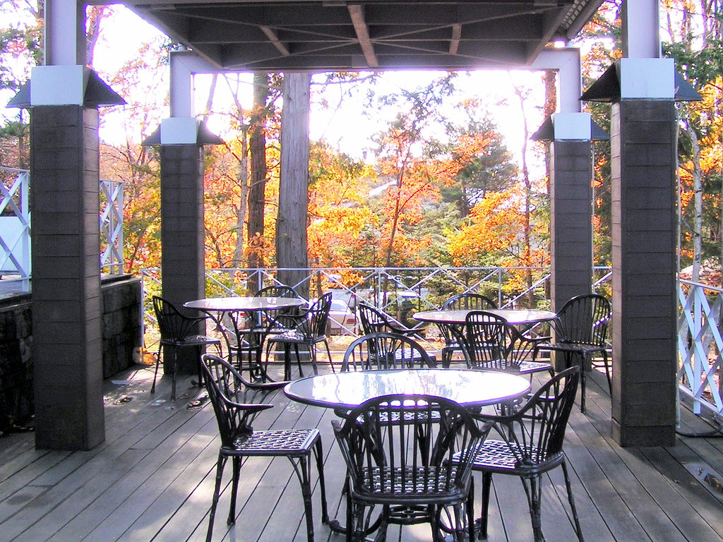 エクシブ軽井沢は、エクシブ蓼科に比べると、紅葉のイメージは薄いと思うが、軽井沢のお庭でも結構、紅葉は楽しめるのだ。昨年の11月に撮影した中から何枚か紹介しよう。今年に当てはめると、ちょうど来週あたりのイメージである。まず冒頭の写真はラウンジのテラス前。