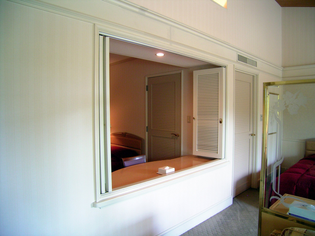 写真で窓のように見えている部分がもう1つのベッドルームだが、和洋室タイプだと和室がリビングに向かって開けていて一体感がある。これに対してこの洋洋室タイプは、ベッドルームの独立感が高く、リビングとの間の窓を開けてみても、何か別々の時間が流れている感じがする。