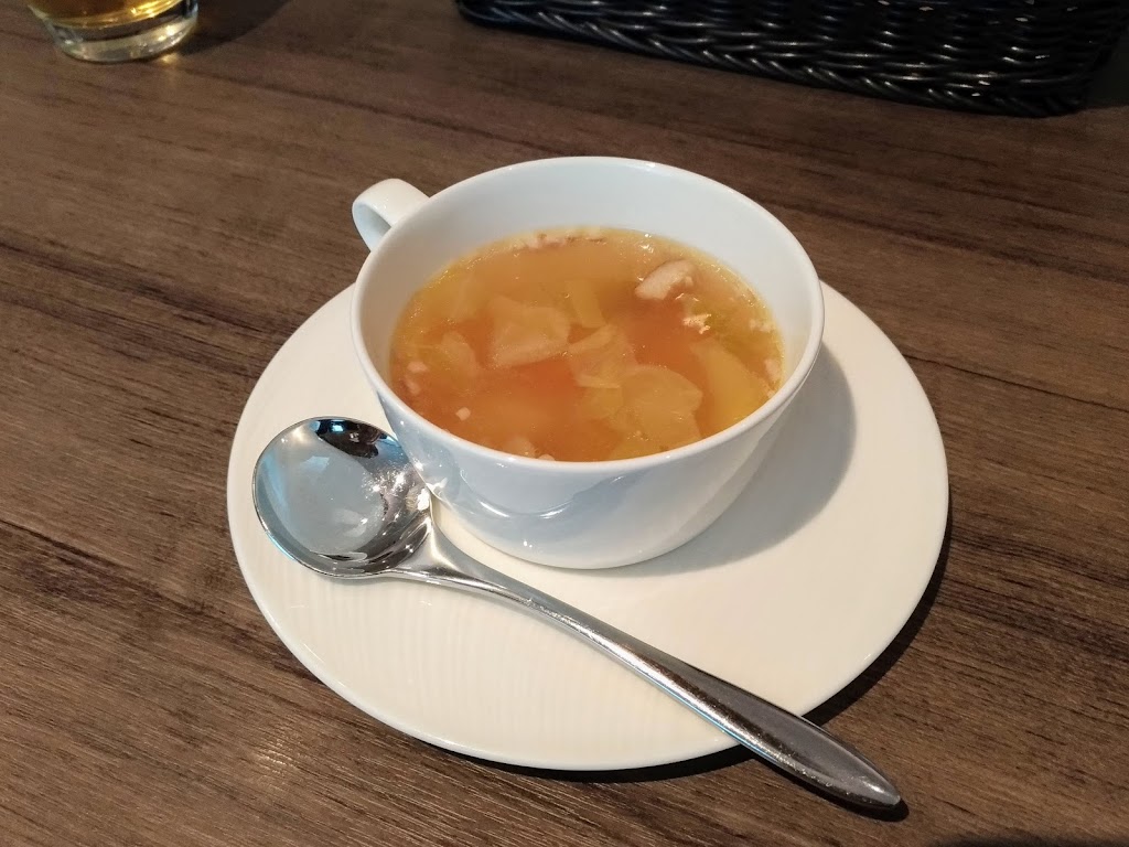 というわけで、ステーキランチの内容について紹介します。まず最初にスープとミニサラダが出ます。スープは美味しかったですが、サラダはまぁ普通でした。