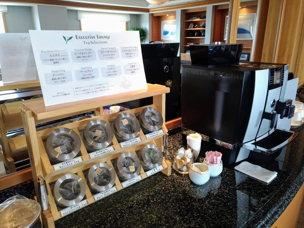 クッキーくらいあってもよさそうなものですが、食べ物は何もなく、コーヒーサーバーと各種のホットティーがあるだけです。