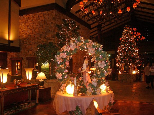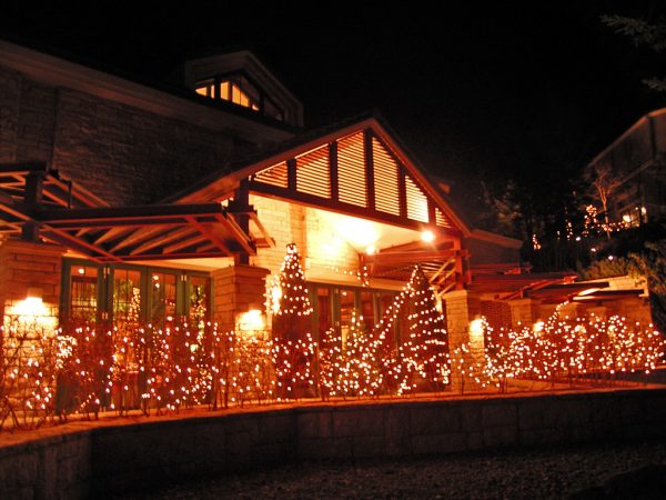 「リースがお迎え」のエントリーで紹介したリースの夜バージョン。後ろのラウンジ前で記念撮影をしている方がいるが、その方と比べると、大きさがわかっていただけるかな。夜のエクシブ蓼科のロビー、ラウンジは、その重厚さが際立って感…