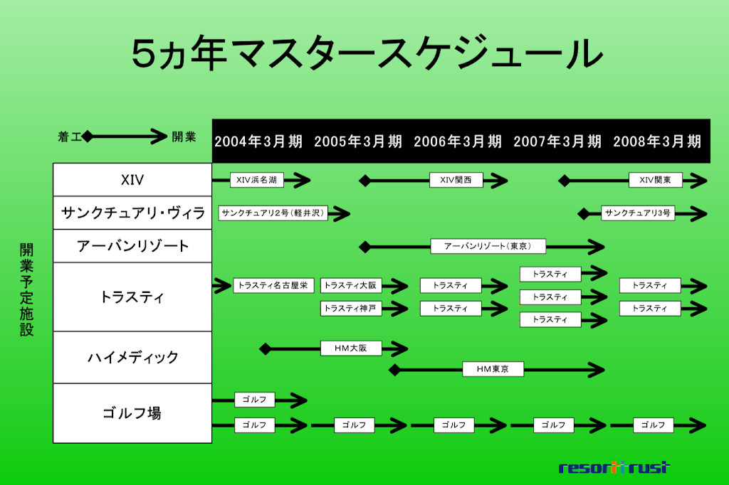 当時すでに販売していたエクシブ浜名湖は、予定通り2004年3月に「グランドエクシブ浜名湖 ゴルフ&スパリゾート」として開業します。また同年11月には「エクシブ軽井沢 サンクチュアリ・ヴィラ」が予定通り開業しました。