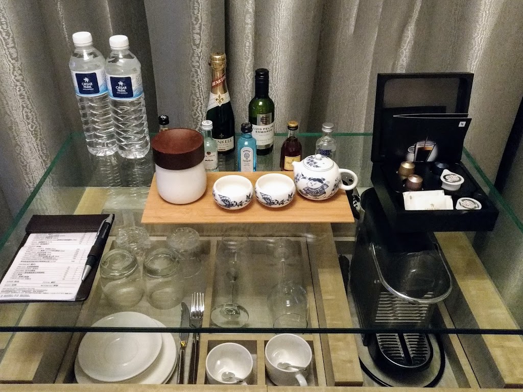 このホテルは一応5つ星ということになっていますから、ミニバーもちゃんとしていました。コーヒーもカートリッジ式のもので、美味しくいただけます。