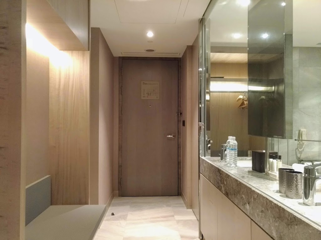 このように細長い間取りのお部屋なんですが、とても面白い作りになっていて、同じ建物にあるヒルトンとはまるっきりお部屋の様子が違っているのが興味深いです(実はシーザーメトロ台北という、同じ会社が運営している別のホテルにも泊まったのですが、そちらもとてもユニークで興味をひかれました)。