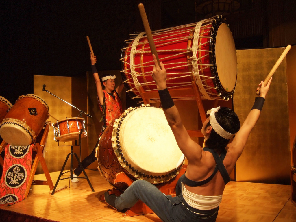 今年のパーティの演者は和太鼓ユニット「雙龍」、山本麻琴さんと七海さんのお二人である(雙龍さんのバックグラウンドや活動については、公式ブログをご覧ください)。昨年の和太鼓奏者、塩原良氏がエンタテインメント色の強い演奏だったのに対して、雙龍さんは諏訪大社の神楽を務めるという格式が感じられて、これまた素晴らしいものであった。