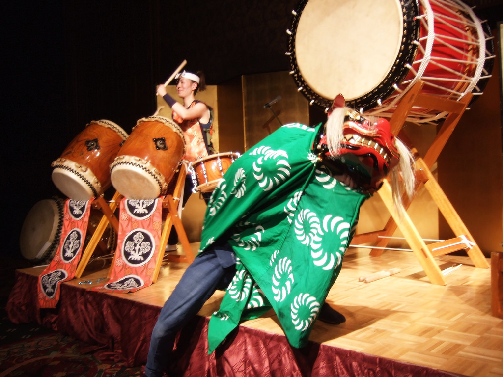 年が明けると再び雙龍のお二人の演奏。獅子舞も登場してお正月の到来を実感するひとときだ。