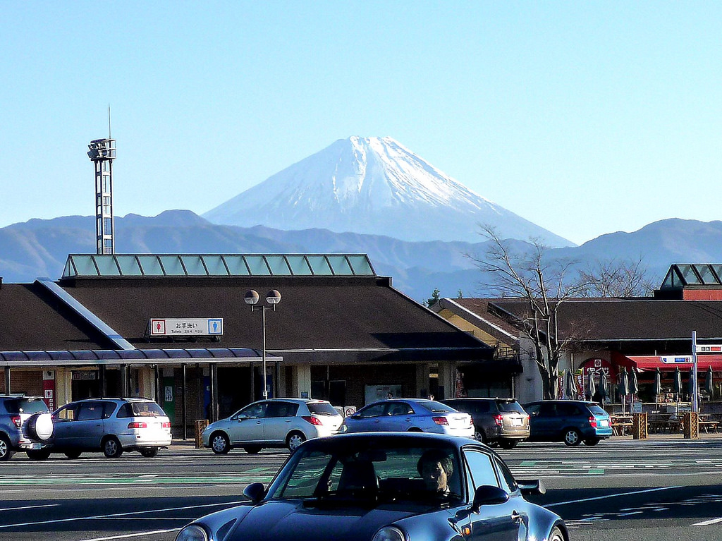まずは甲府盆地越しにバーンと姿を見せている富士山。単にSAに入って駐車するだけでこれだから、なかなかのものである。