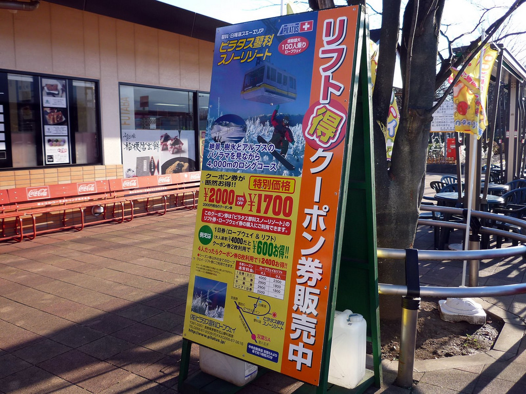 それから冬場には見逃せないポイントが1つ。以前にも紹介したが、このSAの売店では、ピラタス蓼科スノーリゾートの割引クーポンが購入できる。