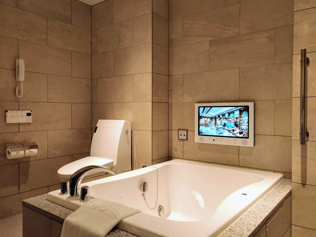 ビジネスホテルですら3点セットの時代はとうに終わっていますから、スペースやデザインの関係で同じ場所に設置するにしても、もう少しなんとかならなかったのかと思います。