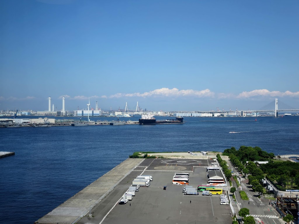 最後に、背後のホテルの15階のお部屋から少しズームして、横浜のベイビューを眺めた写真を掲載します。