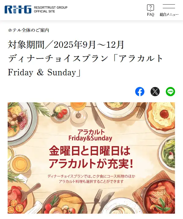リゾートトラストは9月12日から「アラカルトFriday&Sunday」なるキャンペーンを実施中です。これは既存の「ディナーチョイスプラン」の販促で、対象ホテルの金曜日と日曜日にアラカルト料理を拡充し、コース料理を頼みたくない層をレストラン利用に取り込もうとするものです。