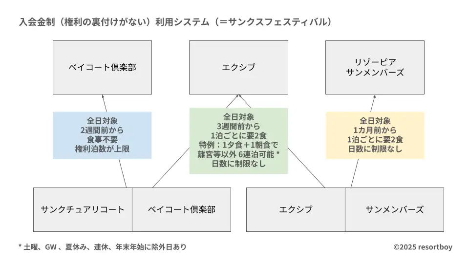 現在、そしてこれから販売される会員権は、占有日がわずか8日しかないのに非常に高額です。ですから、このサンクスフェスティバルに代表される、占有日を必要としない利用システムが主戦場となってきている感じです。