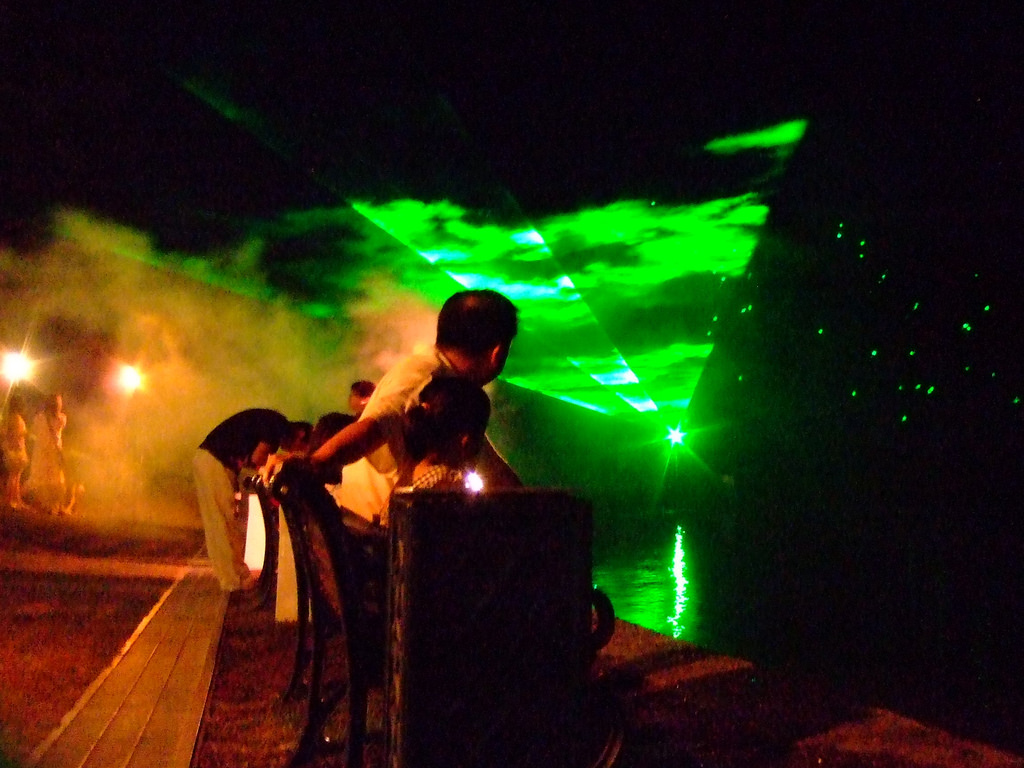 素晴らしいとかすごく楽しいとかいうほどのものでもないのだが、なかなか見れないものなので、これから行かれる方は是非。夏の期間は、9月20日までの毎日、19:30から約15分行われている。それ以降も内容を変更して続行するという。ちなみに、このショーの技術を提供しているのは川崎市にある「カスト」という会社のようだ。