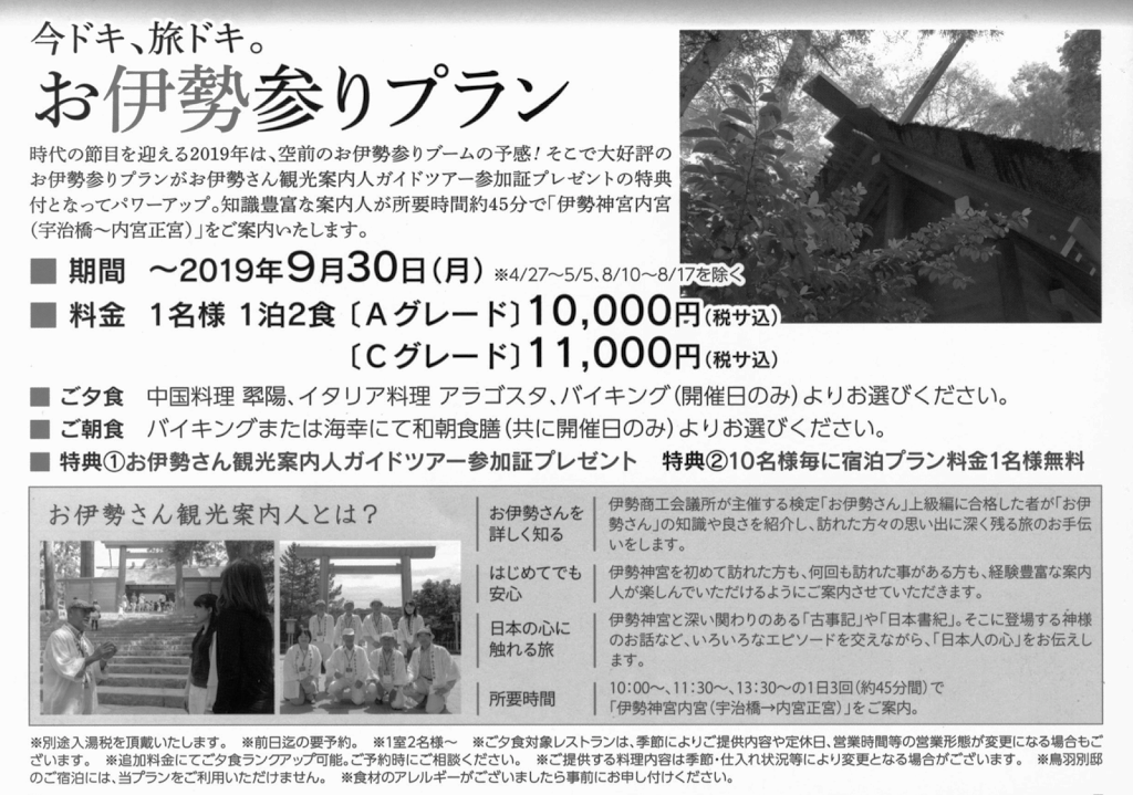 1 「お伊勢参りプラン」の期限が2019年9月30日まで延長されていました。