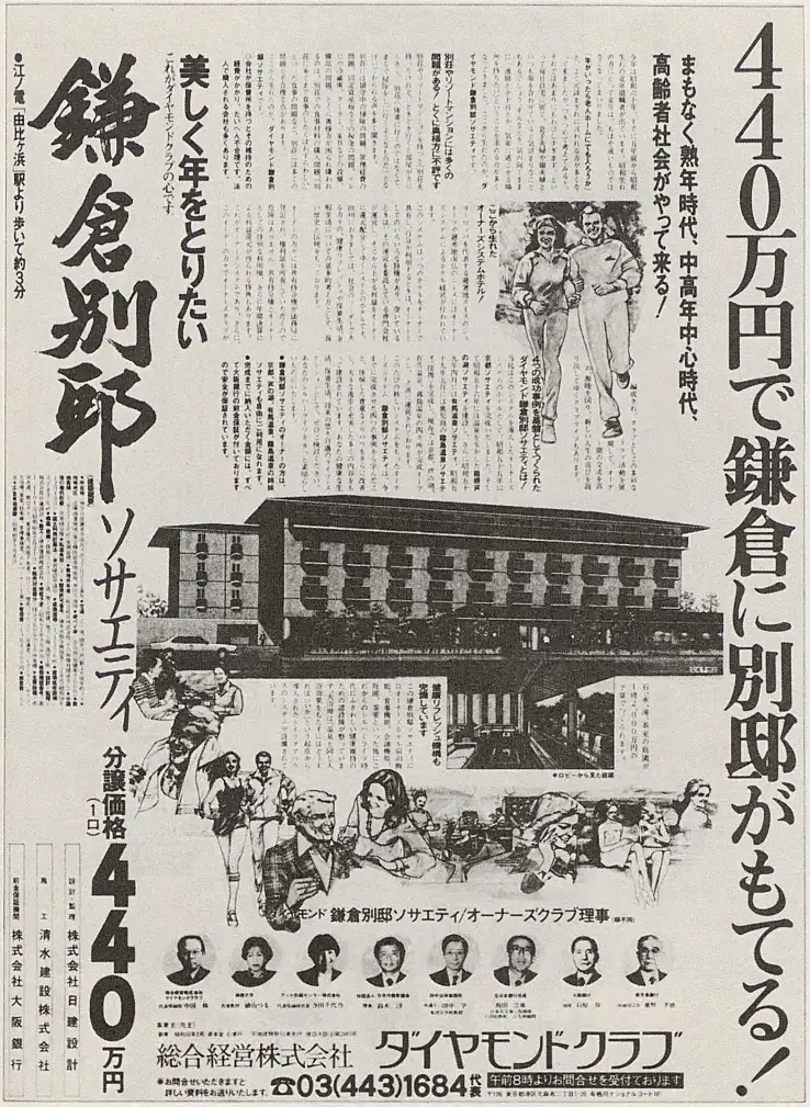 当時のダイヤモンドリゾートは、出発点であった預託制の「ダイヤモンドメンバーズ」がまだ現役であり、発展的に共有制によって豪華化した「ダイヤモンドオーナーズクラブ」(ソサエティを冠するホテル群)は「定年後」をテーマにしたものでした。