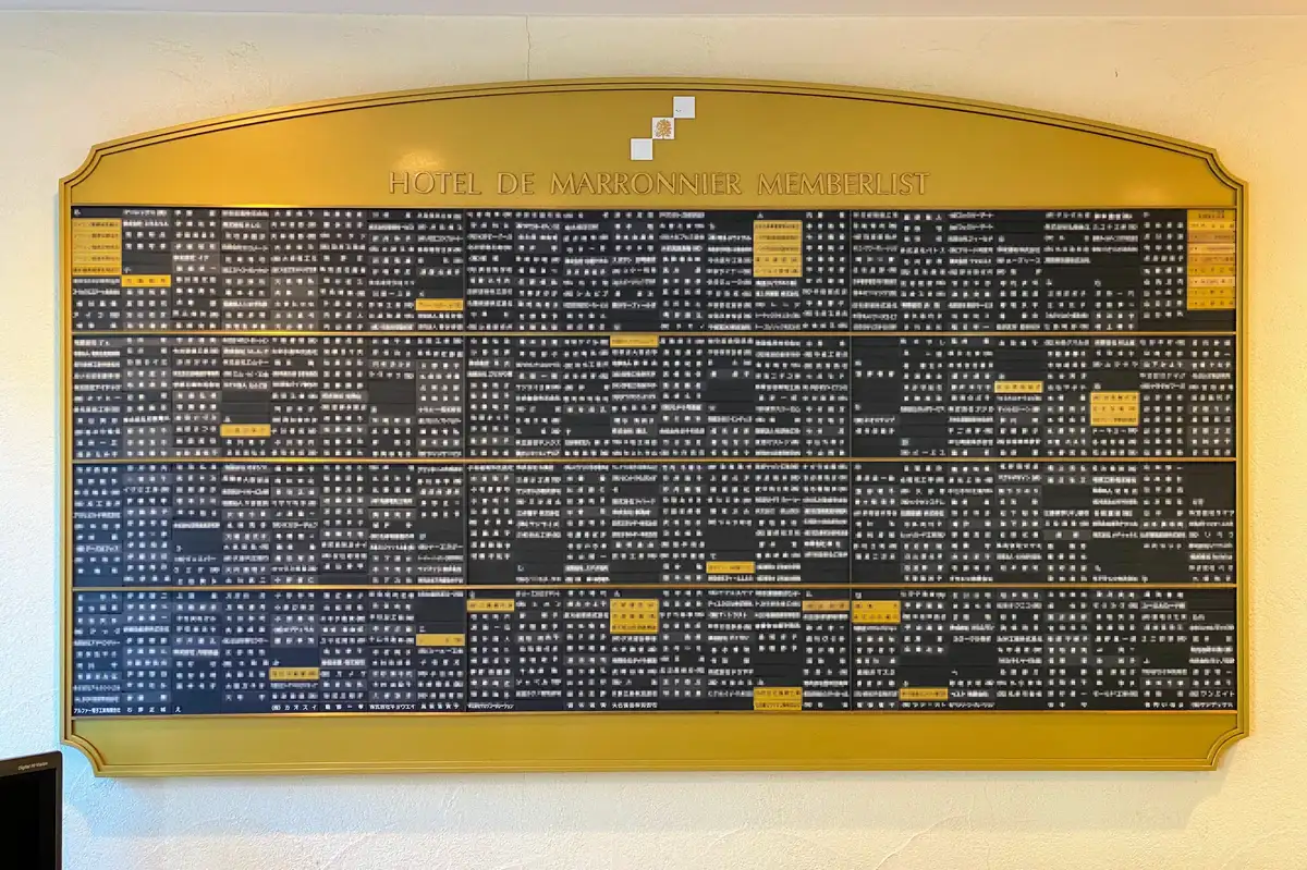 共有制のリゾートクラブとしてダイヤモンドを目標としたマロニエの建物保全状態は、3施設ともに良好でした。面白いのは、共有者のメンバーボードがフロント横に掲げてあることですが、これはダイヤモンドソサエティのホテル群と掲示の仕方までがそっくりです。