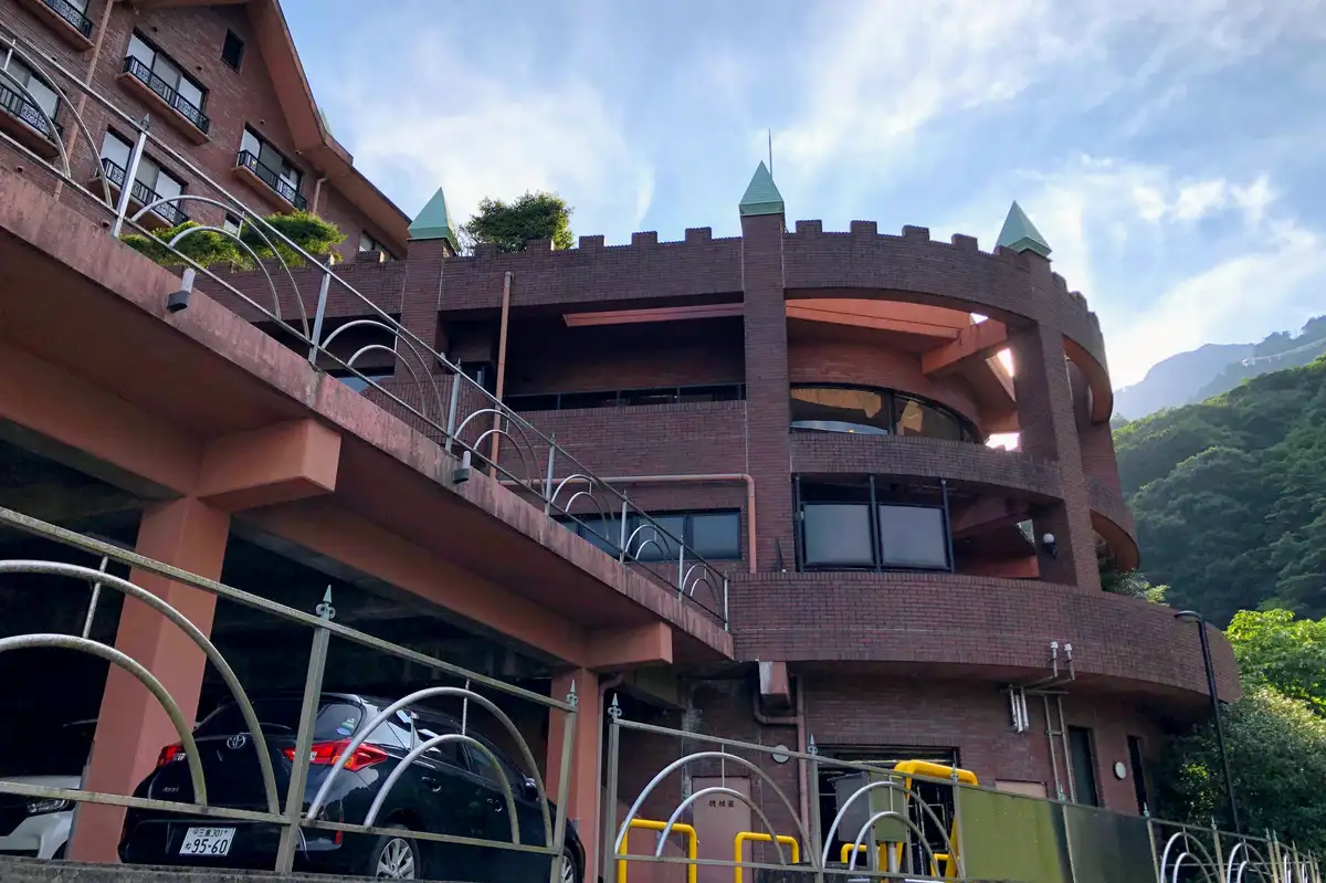 湯の山温泉自体も完全に盛りを過ぎた温泉街で、どこも温泉旅館の廃墟ばかりの残念な場所です。しかしその廃墟群の中で、このマロニエ湯の山温泉だけは、今でも盛業中なのです。
