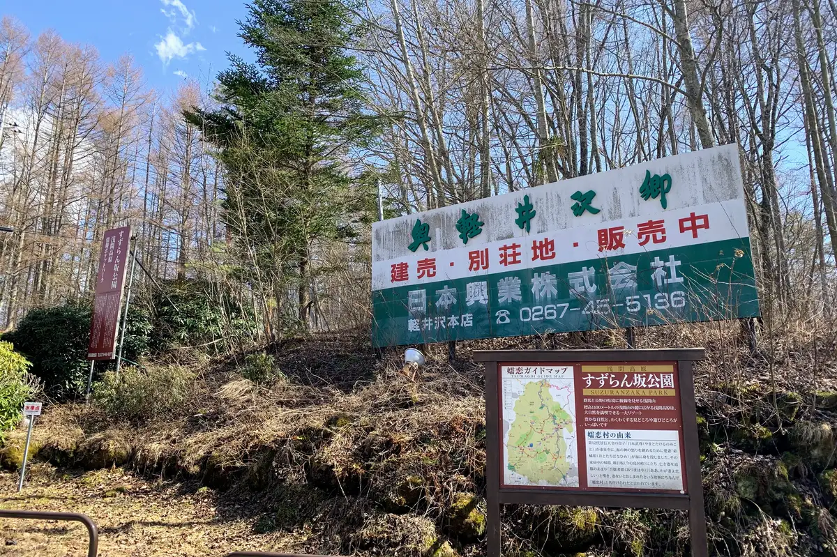 ここに「すずらん坂公園」という看板が名に入りますが、そこから西は「プリンスランド 5」、そして東が「奥軽井沢郷」です。プリンスランドはこのエリア最重要の別荘地となりますので、本連載では別途取り上げます。